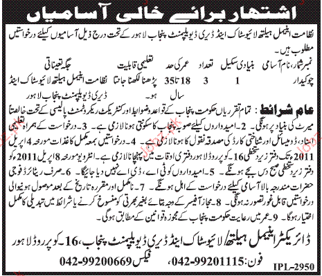 Apply as per details in job advertisement. Login to view further details of how to apply via https://www.jobz.pk online.