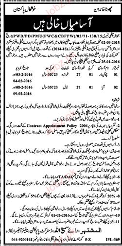 Chawkidars And Aya Job In Population Welfare Department