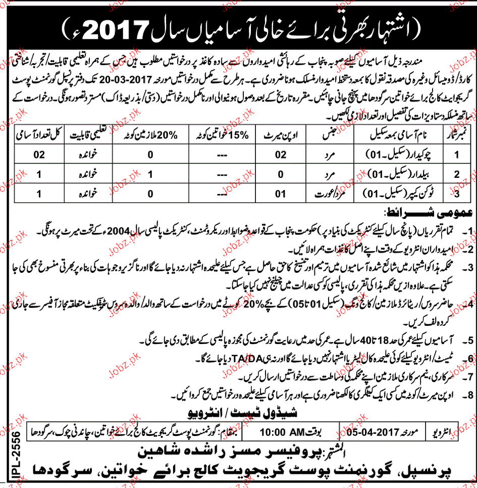 Apply as per details in job advertisement. Login to view further details of how to apply via https://www.jobz.pk online.