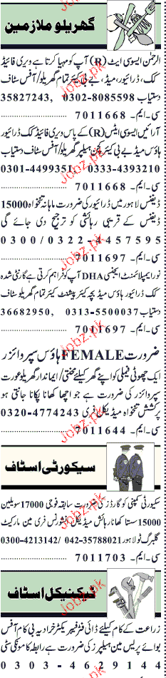 Latest Private Company House Staff Posts Lahore 2025