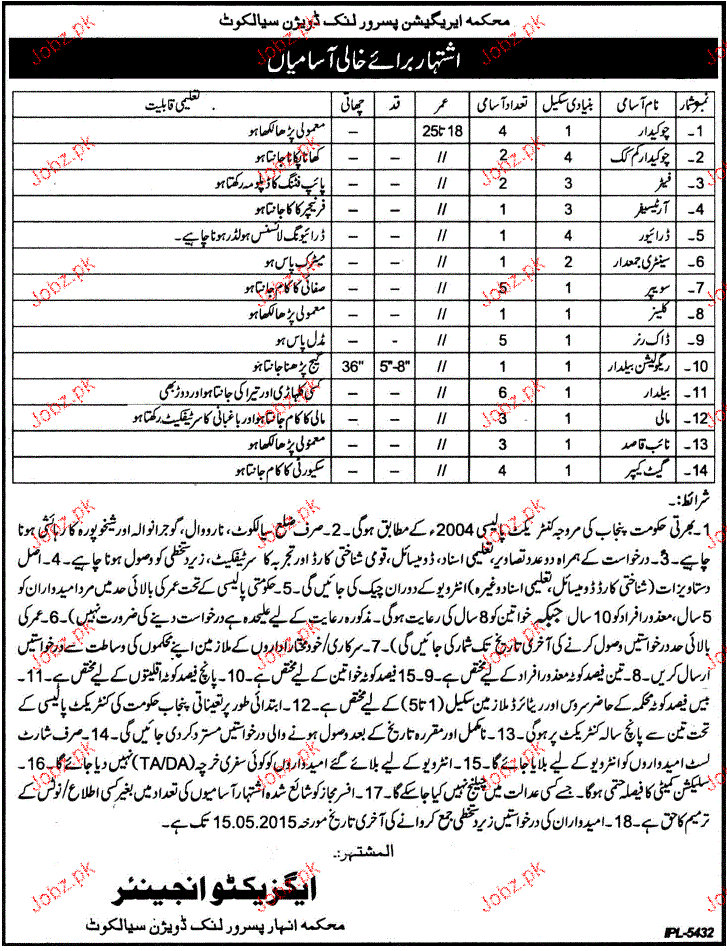 Chawkidars, Drivers, Sweepers Job In Cannal Department