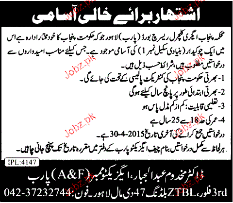 Apply as per details in job advertisement. Login to view further details of how to apply via https://www.jobz.pk online.