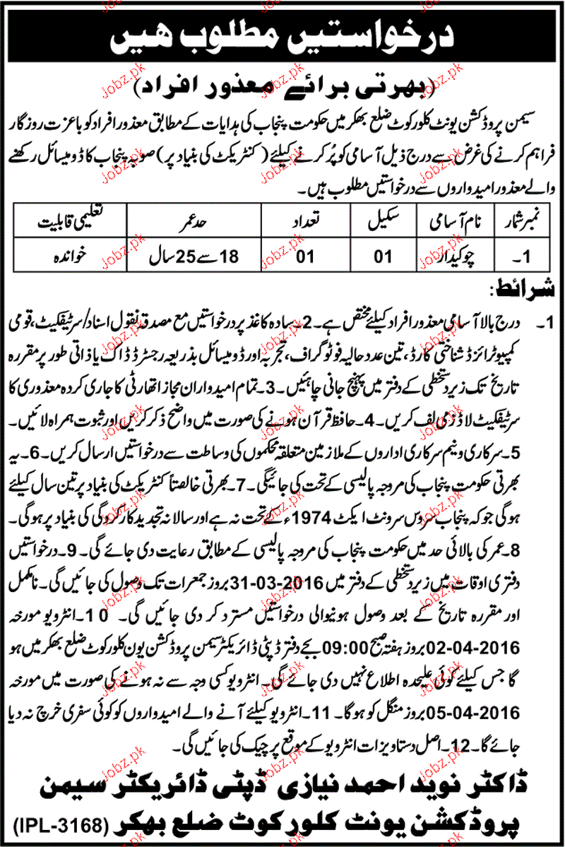 Apply as per details in job advertisement. Login to view further details of how to apply via https://www.jobz.pk online.