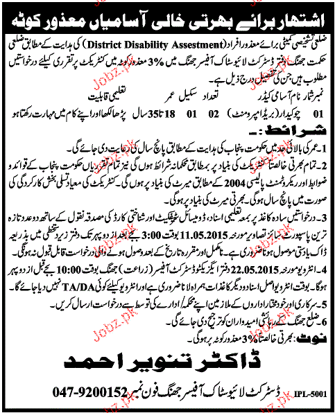 Apply as per details in job advertisement. Login to view further details of how to apply via https://www.jobz.pk online.