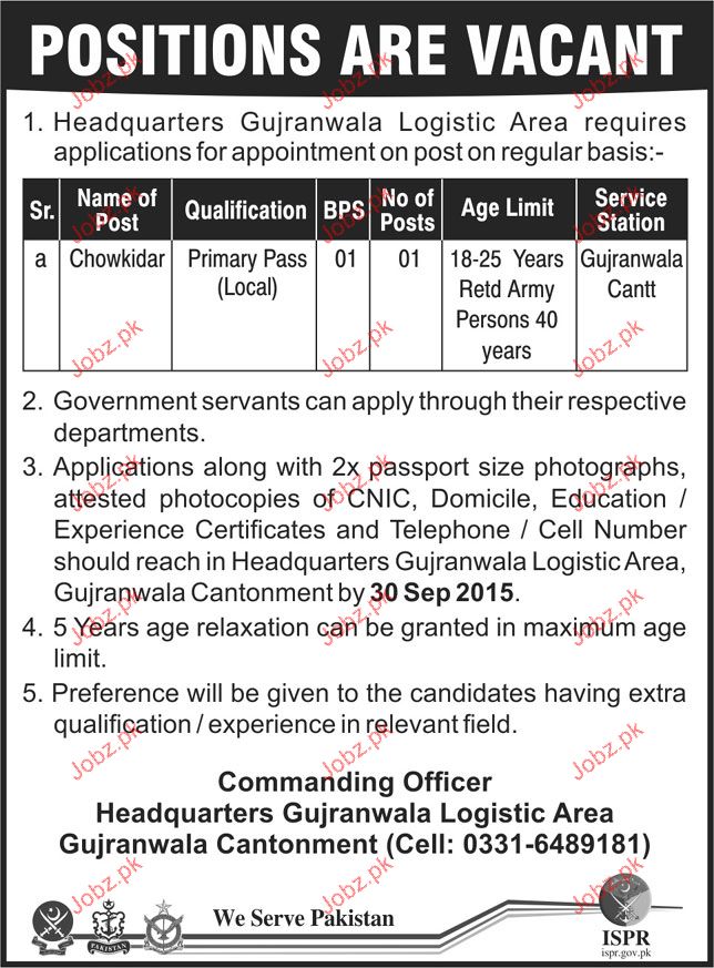 Apply as per details in job advertisement. Login to view further details of how to apply via https://www.jobz.pk online.