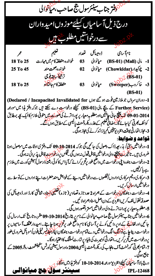 Chawkidars, Malis And Sweepers Job In Senior Civil Judge
