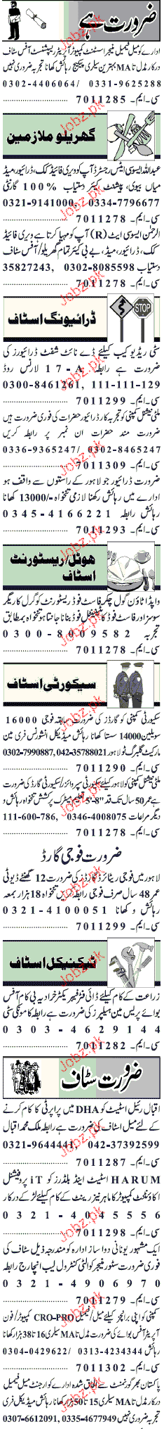 Chawkidars, Sweepers, Drivers and Security Guards Wanted