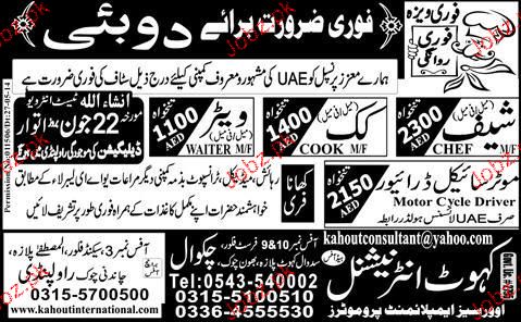 Chef, Cook, Waiters and Motorcycle Drivers Wanted