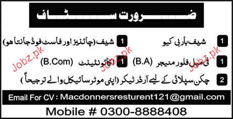 Chef, Female Floor Manager And Accountant Job Opportunity