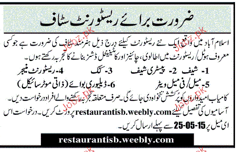 Chef, Pastery Chef, Cook And Restaurant Manager Wanted