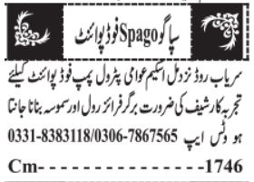 Vacant posts including chef are announced in Fast Food & Restaurant Quetta, quetta Balochistan Pakistan as per 21 March 2023 advertisement in daily Jang Newspaper. Educational qualifications required Middle etc.