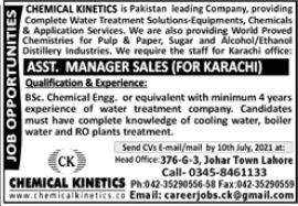 Chemical Kinetics Pvt Limited is seeking applications from experienced, hardworking and dynamic candidates against the posts of Assistant Manager Sales in Karachi, Pakistan 2021.