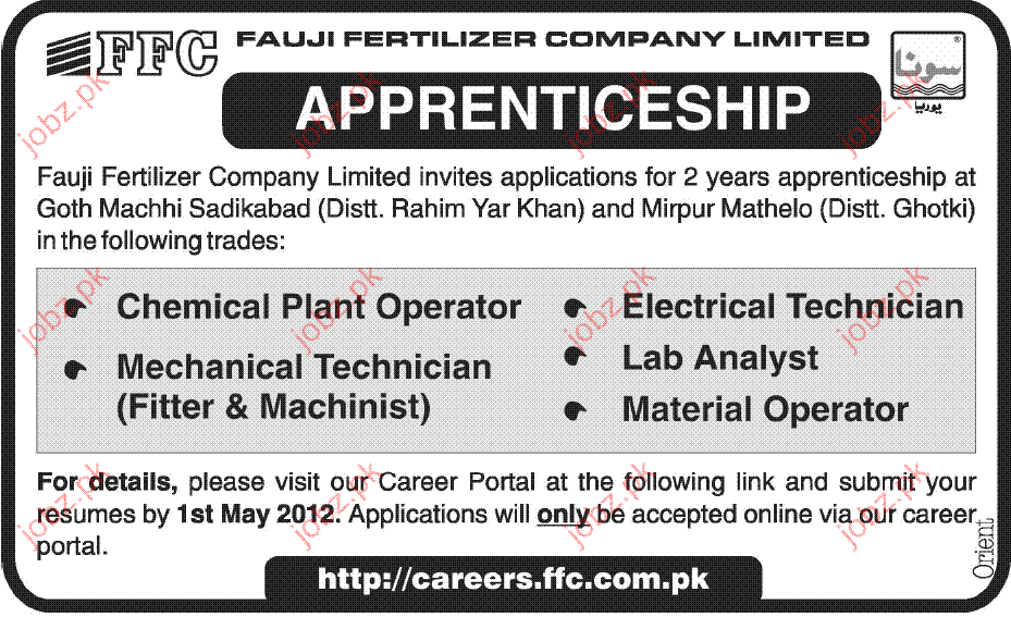 Apply as per details in job advertisement. Login to view further details of how to apply via https://www.jobz.pk online.