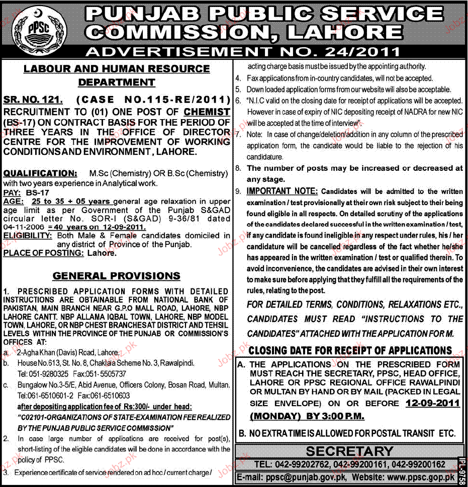 Apply as per details in job advertisement. Login to view further details of how to apply via https://www.jobz.pk online.
