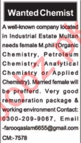 Chemist Jobs in Private Company