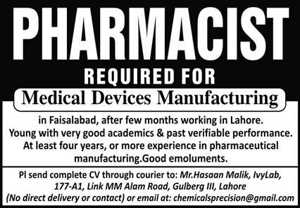 Latest Chemical Manufacturing Unit Medical Posts Lahore 2025