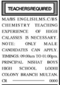 or as per paper ad
