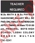Chemistry Teacher & Physics Teacher Jobs 2020 in Multan