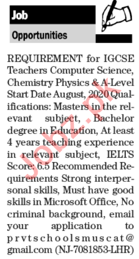 Chemistry Teacher & Physics Teacher Jobs 2020