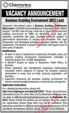 Vacancies in Chemonics International Pvt Ltd Advertisement September 2018