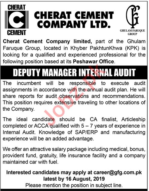 Vacancies in Cherat Cement Company Limited Advertisement August 2019