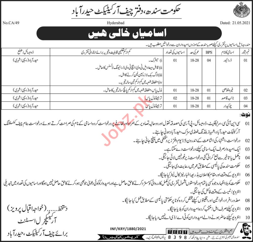 Chief Architect Hyderabad Jobs 2021 for Drivers & Naib Qasid