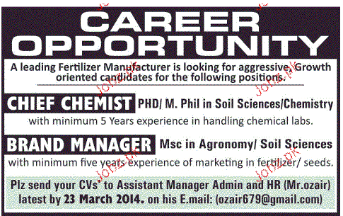 Apply as per details in job advertisement. Login to view further details of how to apply via https://www.jobz.pk online.