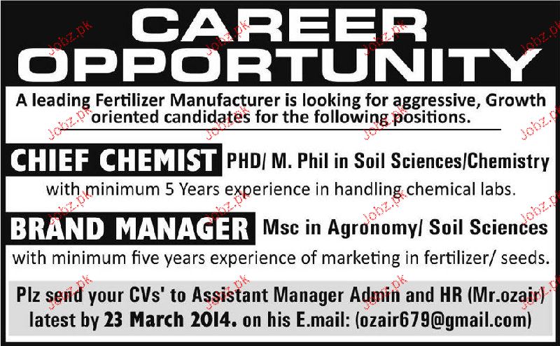 Apply as per details in job advertisement. Login to view further details of how to apply via https://www.jobz.pk online.