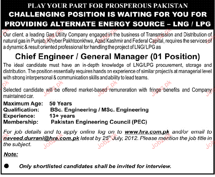 Apply as per details in job advertisement. Login to view further details of how to apply via https://www.jobz.pk online.