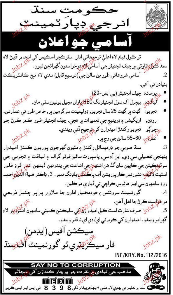 Chief Engineers Job In Energy Department Govt Of Sindh