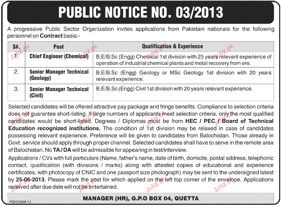 Apply as per details in job advertisement. Login to view further details of how to apply via https://www.jobz.pk online.