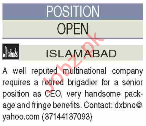 Apply as per details in job advertisement. Login to view further details of how to apply via https://www.jobz.pk online.