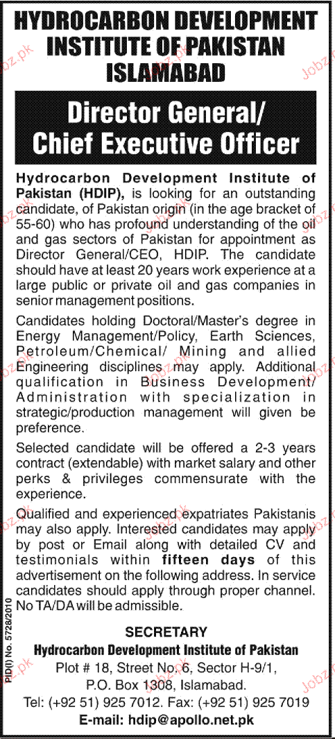 Apply as per details in job advertisement. Login to view further details of how to apply via https://www.jobz.pk online.