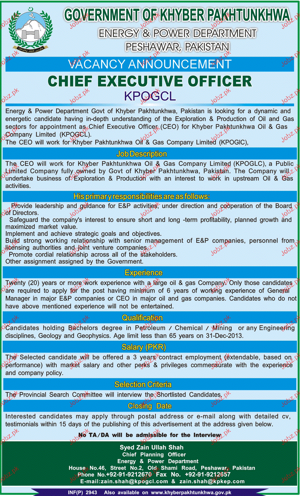 Apply as per details in job advertisement. Login to view further details of how to apply via https://www.jobz.pk online.