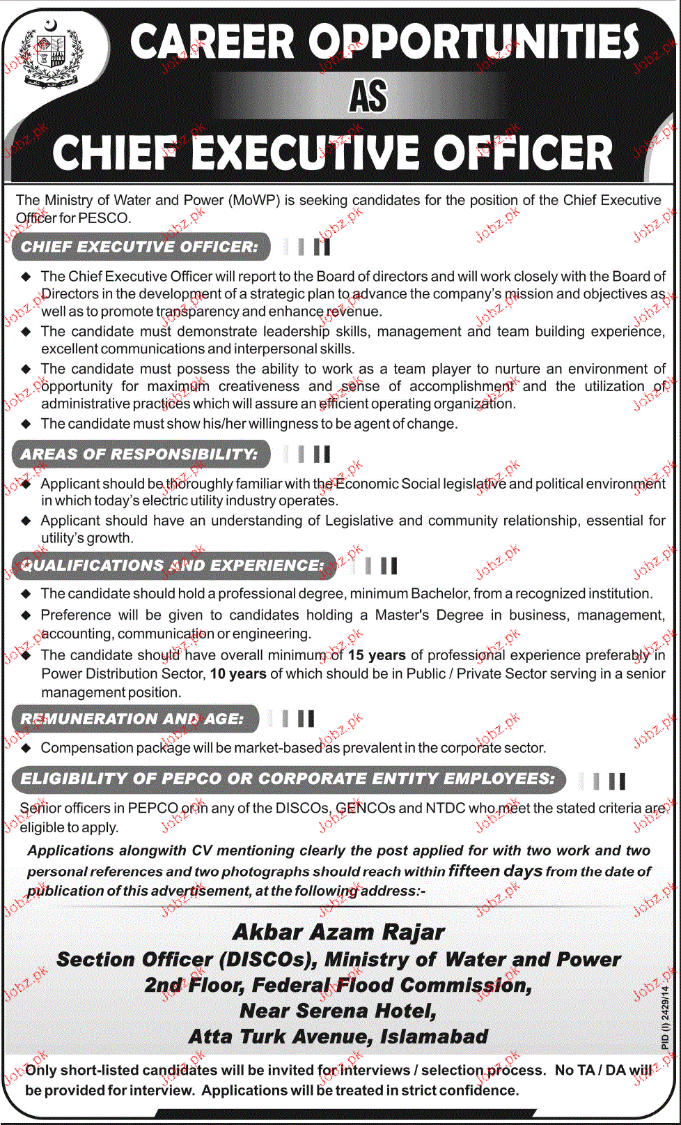 Chief Executive Officer Job In The Ministry Of Water And Pow