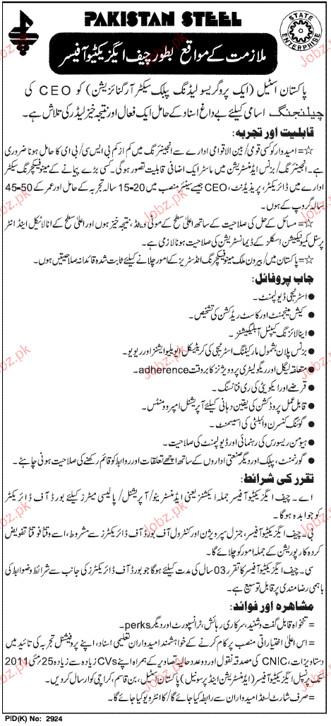 Apply as per details in job advertisement. Login to view further details of how to apply via https://www.jobz.pk online.