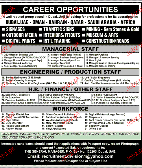 Apply as per details in job advertisement. Login to view further details of how to apply via https://www.jobz.pk online.