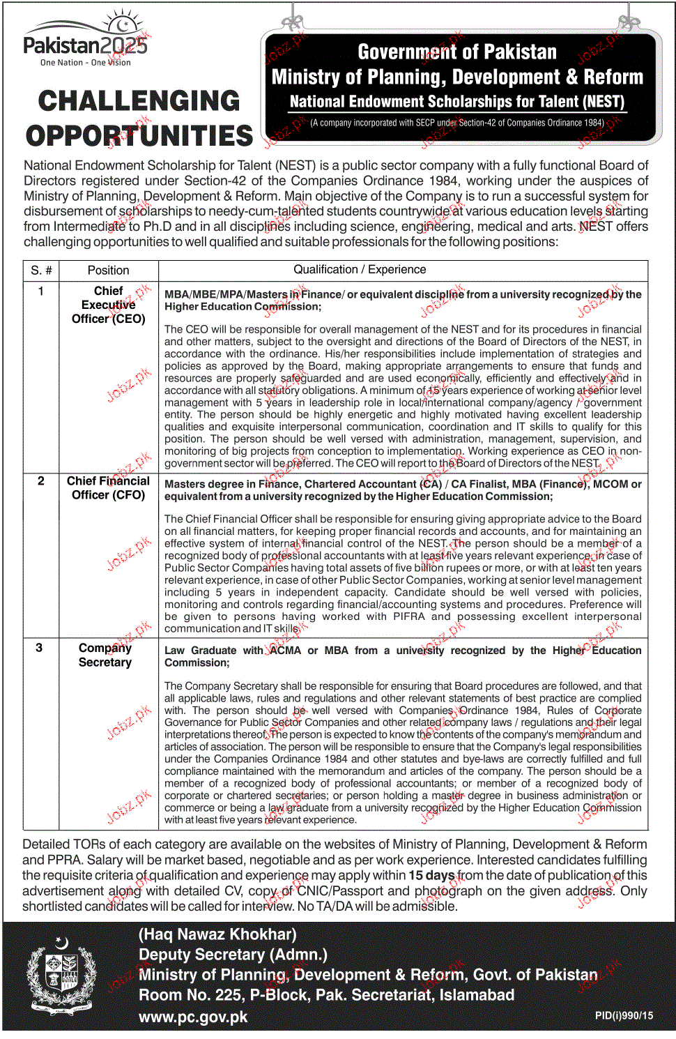 Apply as per details in job advertisement. Login to view further details of how to apply via https://www.jobz.pk online.