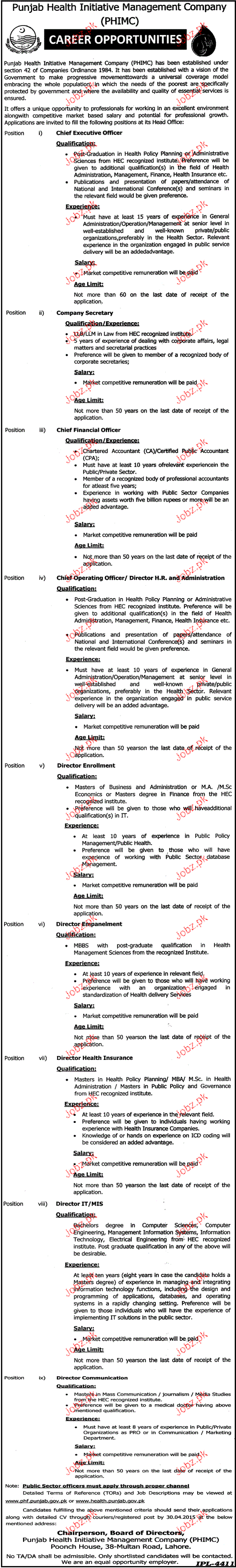 Apply as per details in job advertisement. Login to view further details of how to apply via https://www.jobz.pk online.