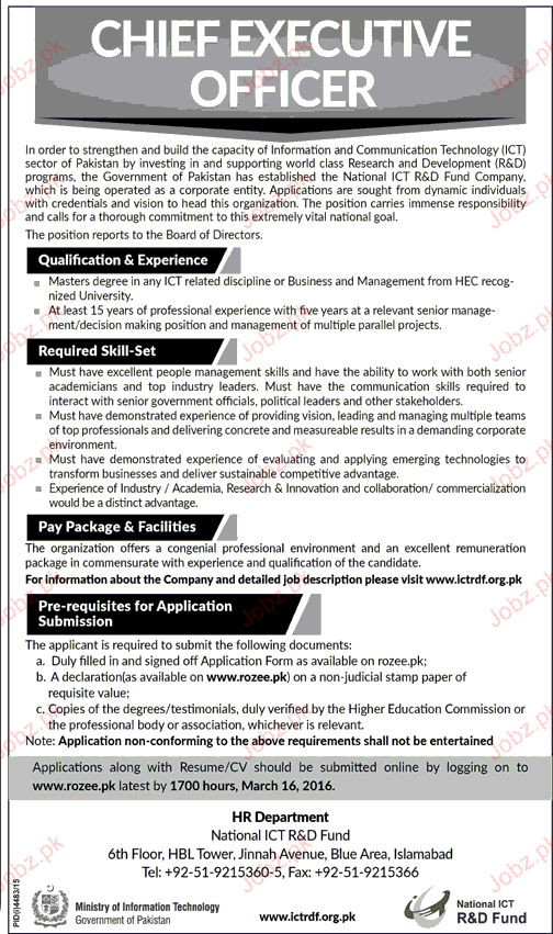 Apply as per details in job advertisement. Login to view further details of how to apply via https://www.jobz.pk online.