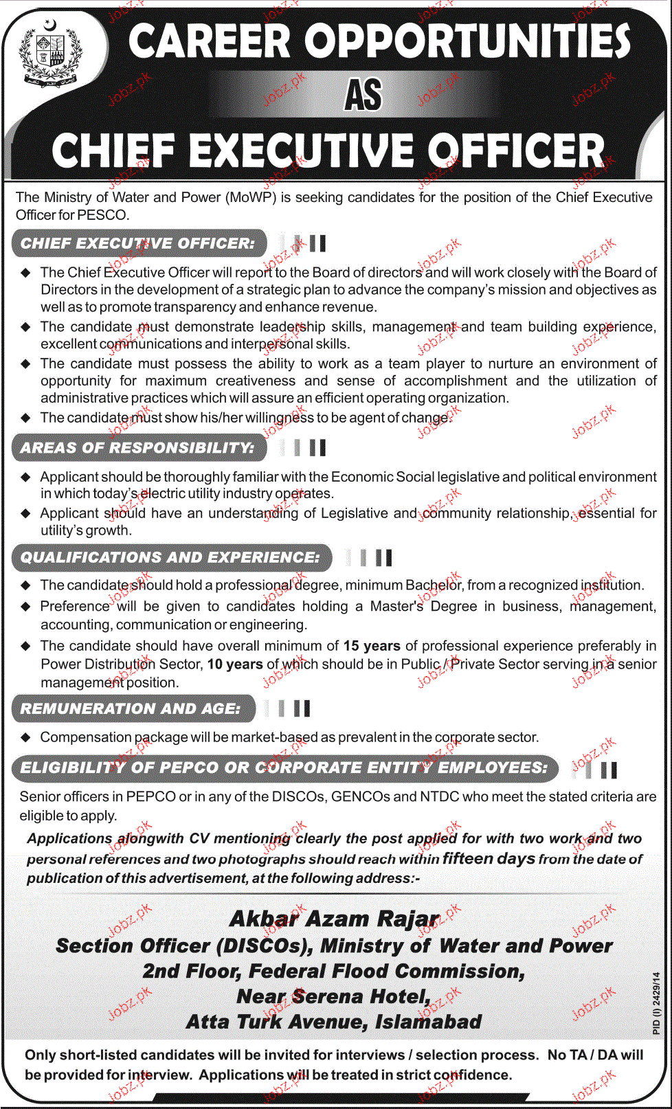 Apply as per details in job advertisement. Login to view further details of how to apply via https://www.jobz.pk online.