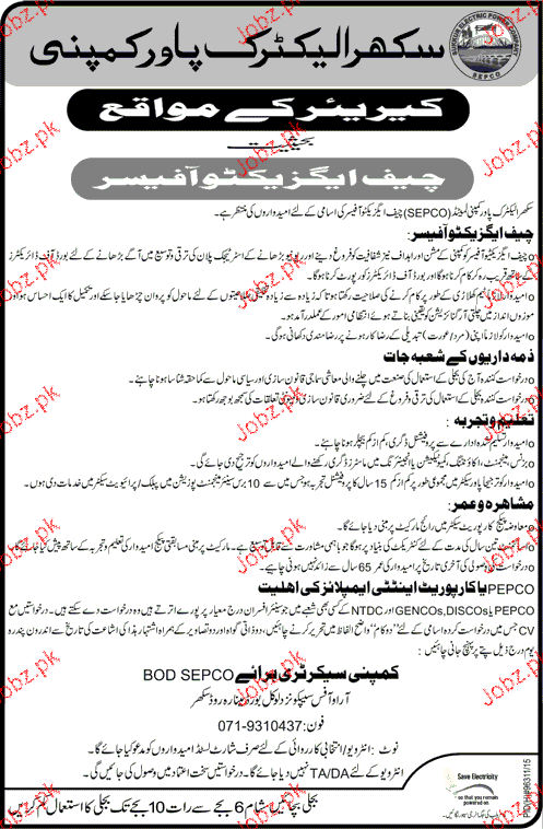 Chief Executive Officers Job In Sukkur Electric Power Compan