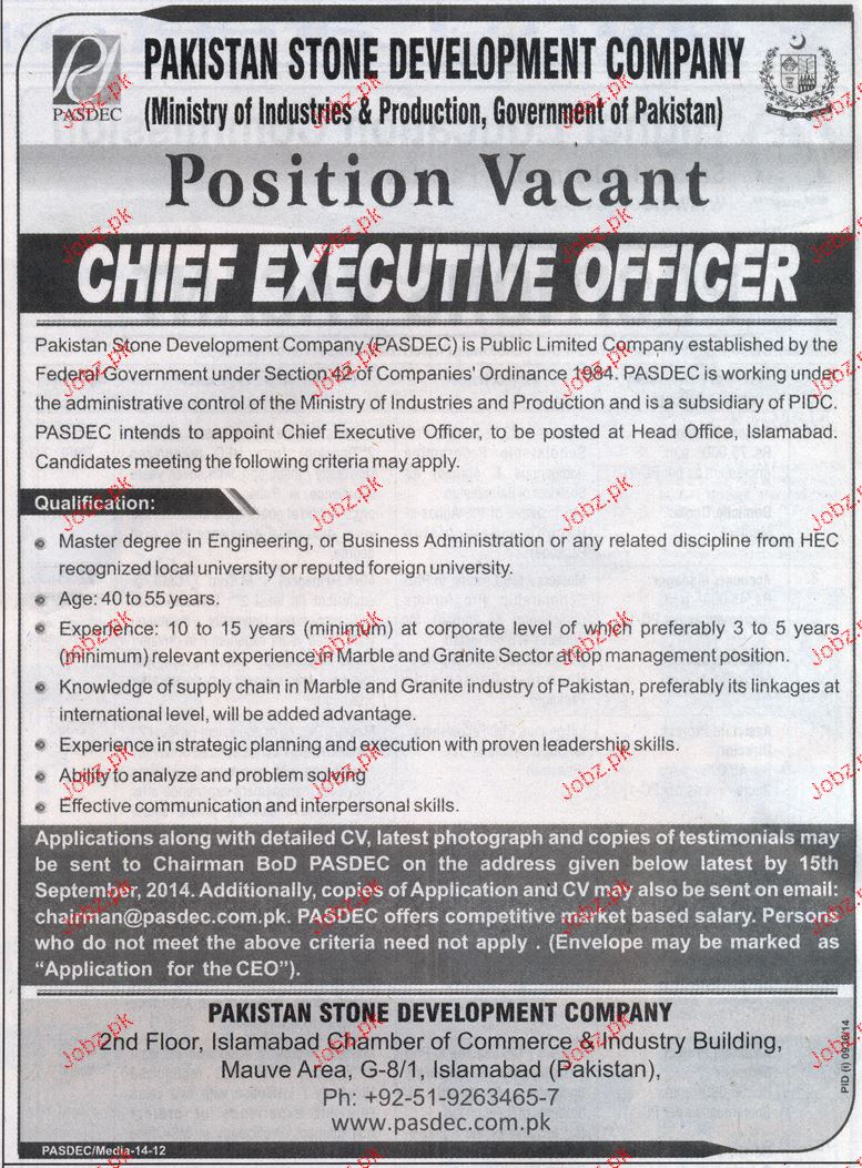 Chief Executive Officers are required in Pakistan Stone Development Company in Islamabad.