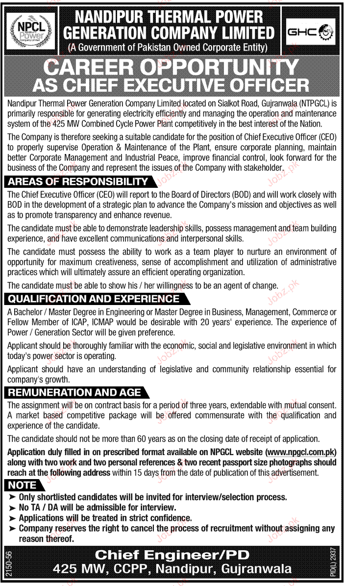 Apply as per details in job advertisement. Login to view further details of how to apply via https://www.jobz.pk online.