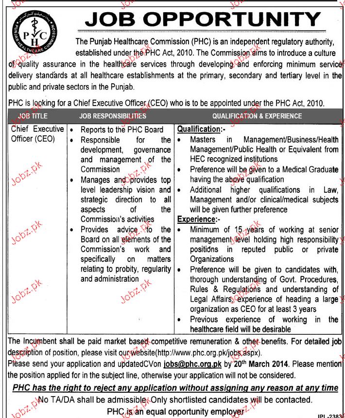 Chief Executive Officers Job The Punjab Healthcare Commissio