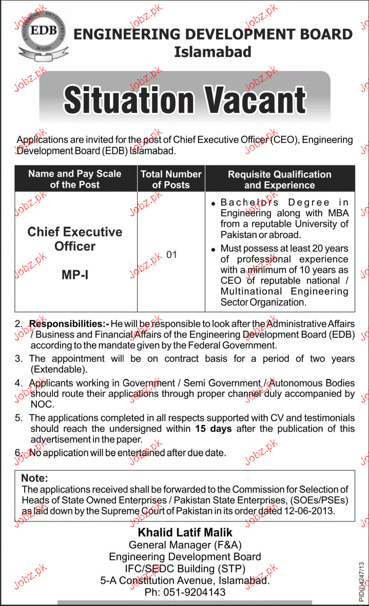 Apply as per details in job advertisement. Login to view further details of how to apply via https://www.jobz.pk online.