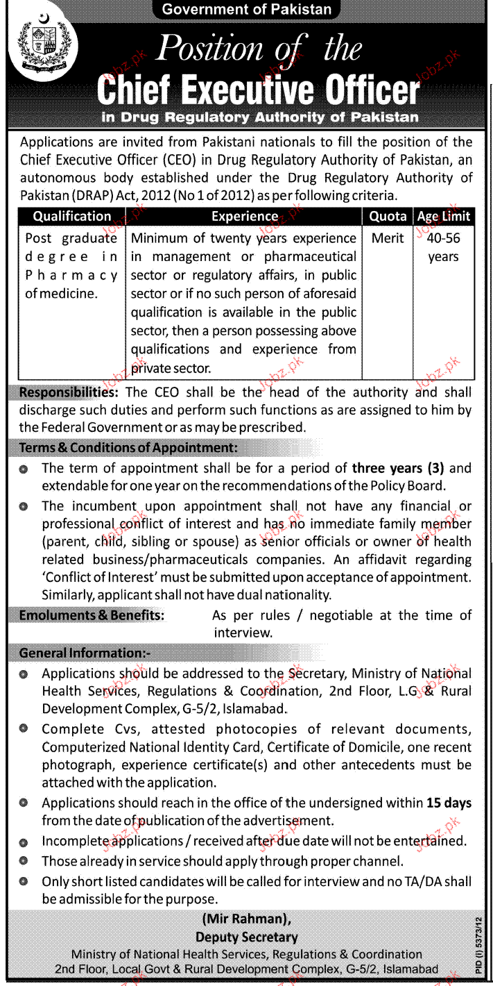 Apply as per details in job advertisement. Login to view further details of how to apply via https://www.jobz.pk online.
