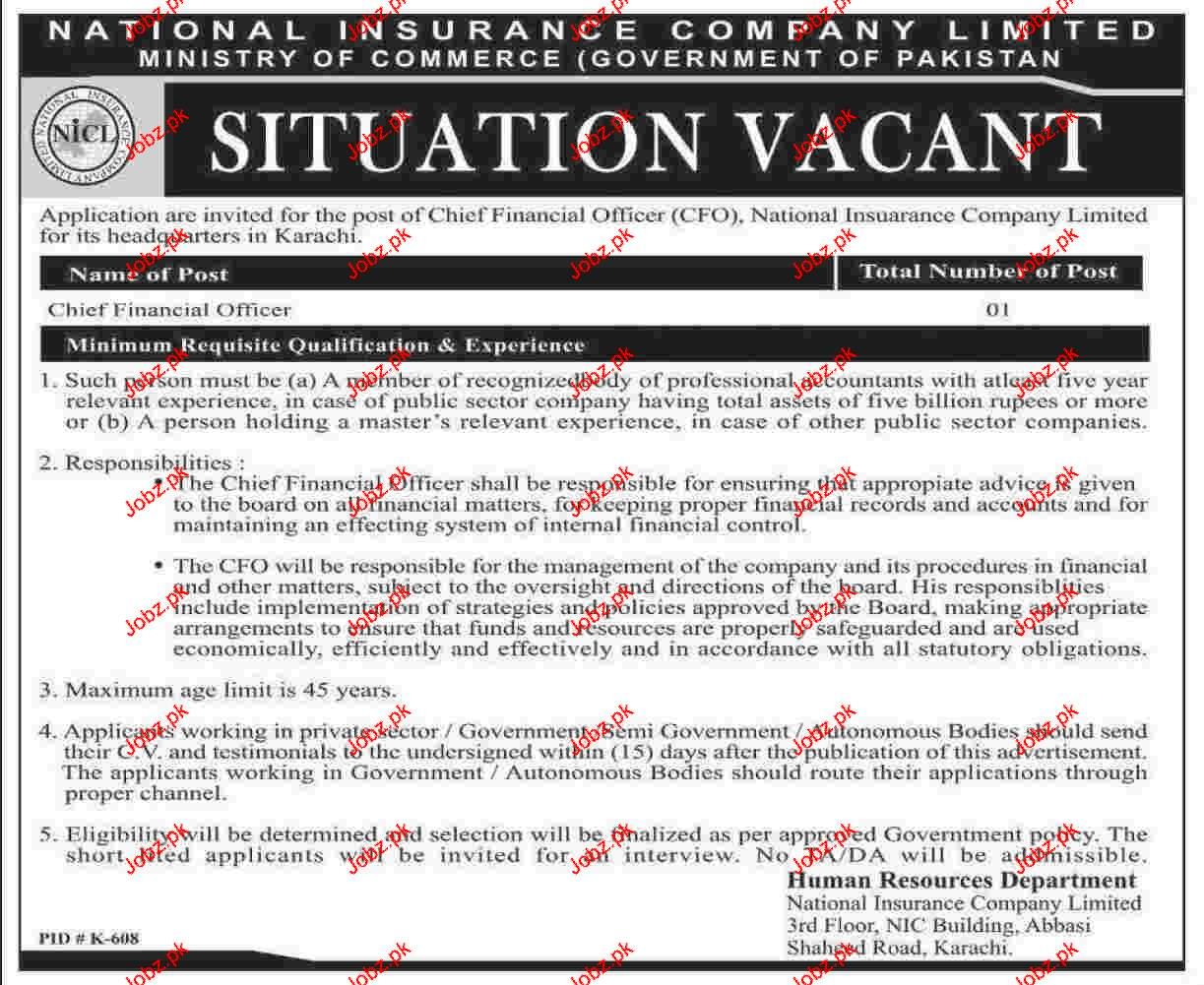 Apply as per details in job advertisement. Login to view further details of how to apply via https://www.jobz.pk online.