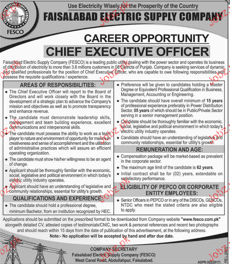 Apply as per details in job advertisement. Login to view further details of how to apply via https://www.jobz.pk online.