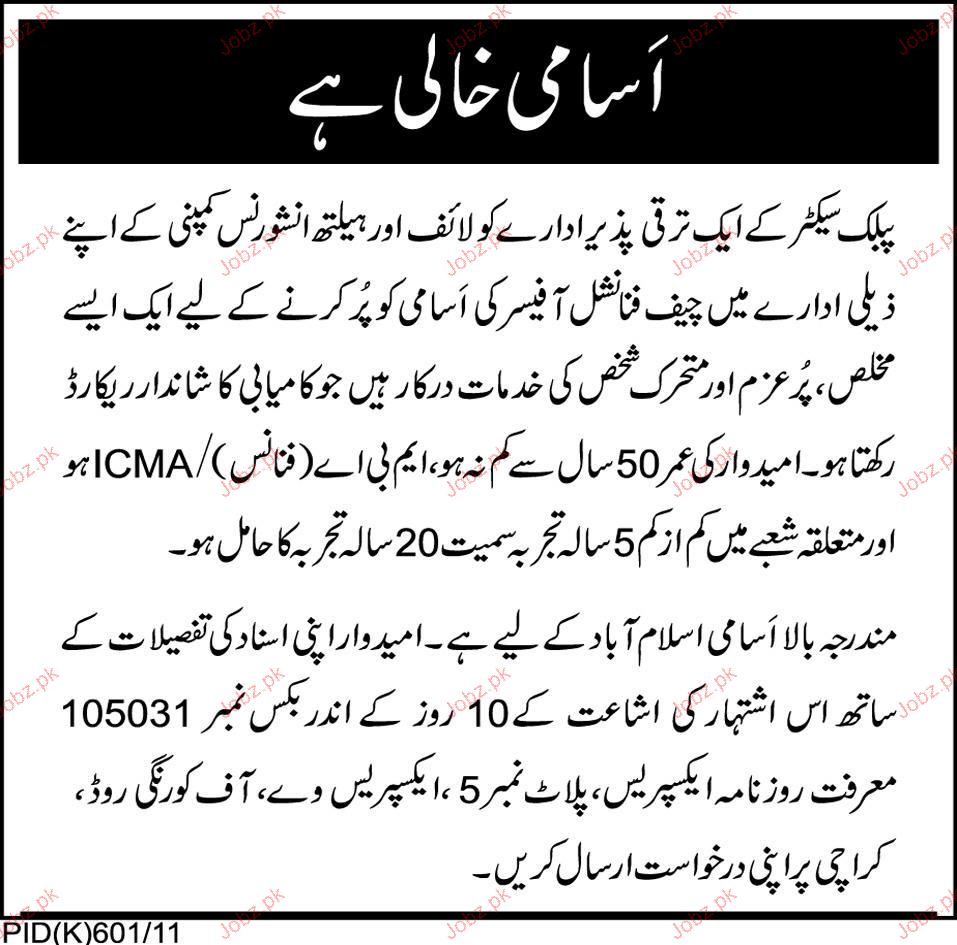 Apply as per details in job advertisement. Login to view further details of how to apply via https://www.jobz.pk online.